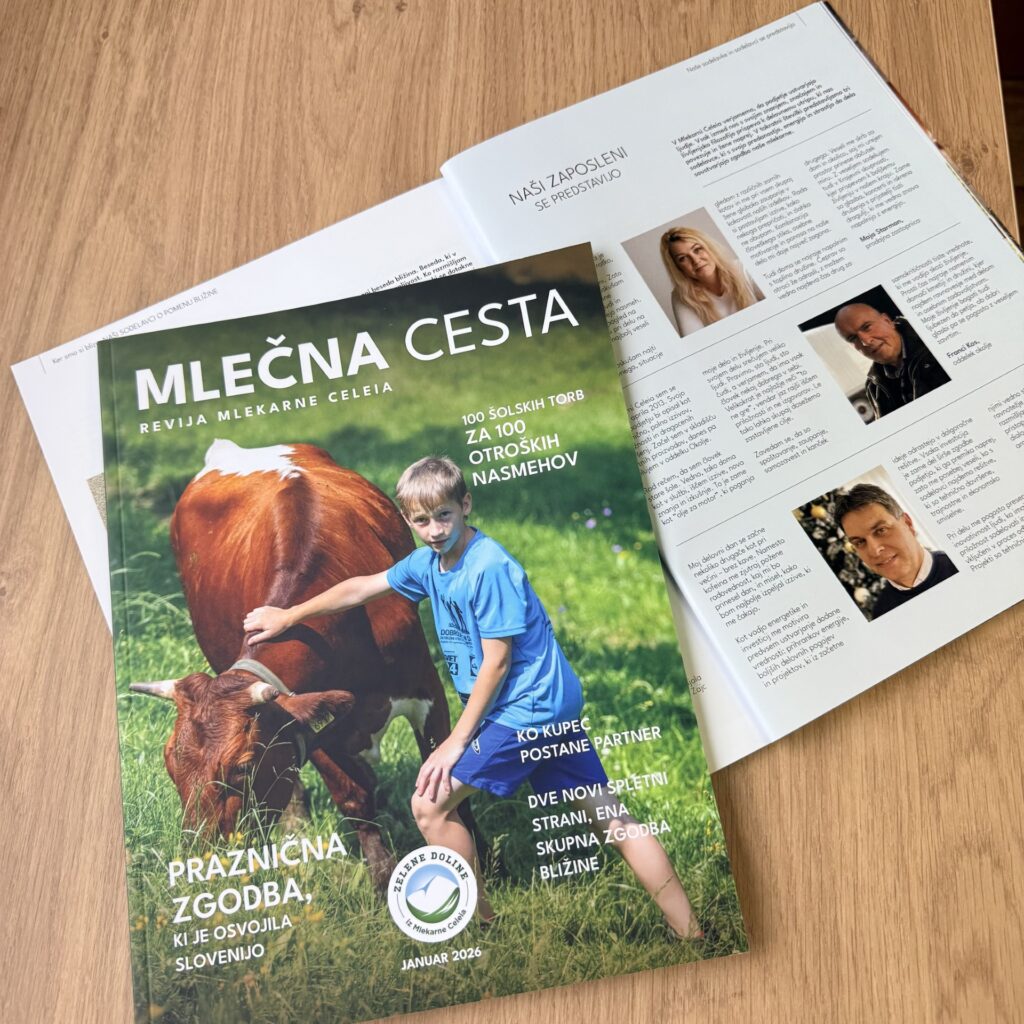 ”Ponosni smo na to, da smo ustvarili še eno zakladnico spominov naše skupne poslovne poti, predvsem pa me veseli dejstvo, da naši zaposleni, rejci in poslovni partnerji v revijo vsako leto z veseljem prispevajo delček svoje osebne note. Mlečna Cesta je revija, ki jo vsak od nas prelista s ponosom, saj nas ob spominu na vse dosežke, dogodke in skupne projekte spomni na to, da je bližina v našem podjetju najpomembnejša vrednota” je svoje misli ob izidu strnila naša sodelavka in urednica Mlečne Ceste Marjeta Železnik.